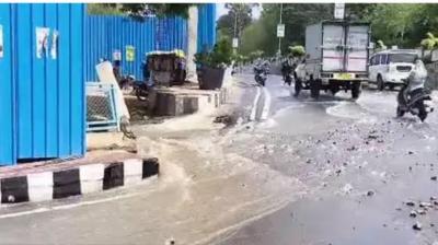 भोपाल में लोक भवन के सामने सड़क धंसी, पानी बहने...