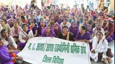 वेतन नहीं मिलने पर आशा कार्यकर्ताओं का प्रदर्शन