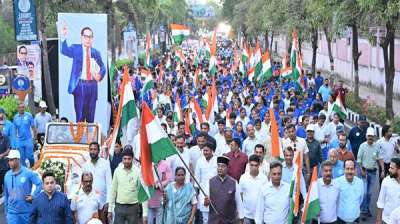 जयभीम पदयात्रा: भारत रत्न डॉ. भीमराव अंबेडकर की 134वीं जयंती की पूर्व संध्या पर मंत्री विश्वास कैलाश सारंग ने हजारों युवाओं के साथ निकाली पदयात्रा