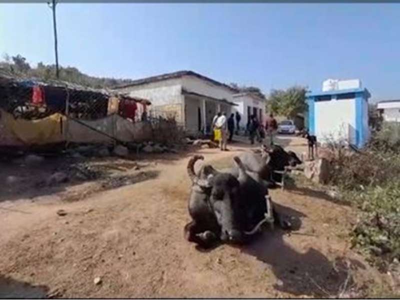 सीहोर। सीहोर जिले के आष्टा ब्लॉक में एक प्राथमिक स्कूल भवन पर दबंग ने कब्जा कर उसे भैंसों का बाड़ा बना लिया। भवन के एक कमरे में पानी रिसने की समस्या और अधिक बच्चे पंजीकृत होने के कारण अब स्कूल एक मंदिर परिसर में संचालित हो रहा है। हैरानी की बात यह भी है कि स्कूल परिसर में शौचालय तक नहीं है। इसके चलते स्कूल शिक्षक ने प्लास्टिक की पन्नी से अस्थायी शौचालय बना रखा है।