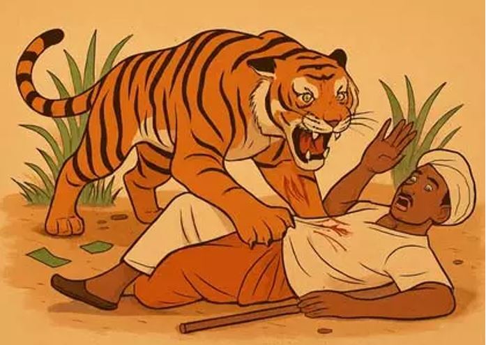जंगल में पानी देने गया किसान बना बाघ का निशाना, झाड़ियों से छलांग लगाकर हमला – ऐसे दी खूंखार शिकारी को मात