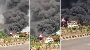 रोड मार्किंग मशीन में जोरदार ब्लास्ट, इलाके में मचा हड़कंप