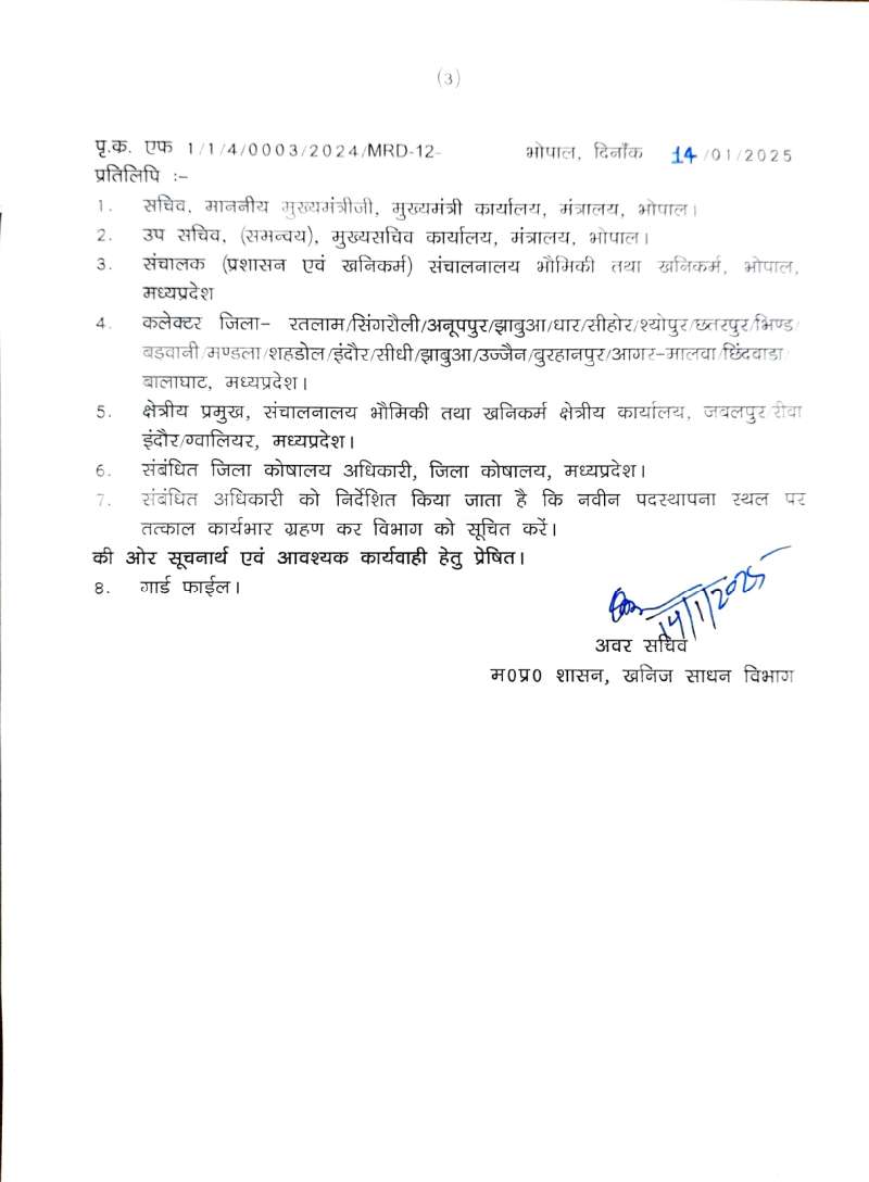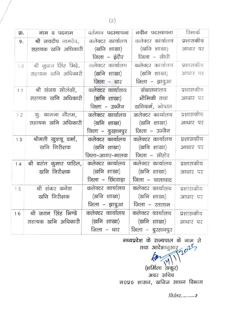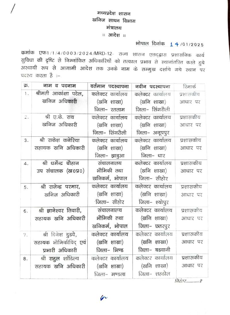खनिज अधिकारियों के तबादले