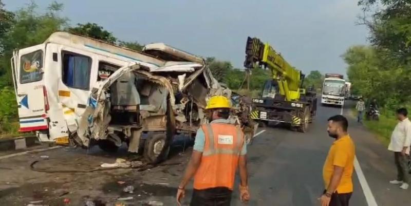 शिवपुरी में ट्रैवलर-ट्रक की भिड़ंत, 4 की मौके पर मौत