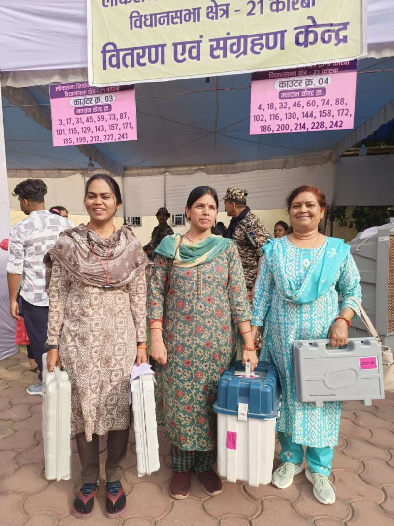 लोकसभा निर्वाचन 2024 अंतर्गत कोरबा में मतदान 7 मई को प्रातः 7 बजे से शाम 6 बजे तक होना है। कोरबा लोकसभा के अंतर्गत कोरबा विधानसभा सीट में इस बार मतदान कराने के लिए जिन अधिकारी-कर्मचारियों की डयूटी लगाई गई है, उनमें सभी महिलाएं शामिल है। कोरबा विधानसभा के 249 बूथों पर लगभग 1150 महिला कर्मचारी होंगी। इसके साथ ही 69 माइक्रों आब्जर्वर, अनेक सेक्टर अधिकारी, सुरक्षा की जिम्मेदारी भी महिलाओं के हाथों सौंपी गई है। जिले के अन्य तीन विधानसभा में 10-10 संगवारी मतदान केंद्र भी बनाएं गए हैं। इन संगवारी मतदान केंद्रों में भी कुल 180 महिलाओं की ड्यूटी लगी है।