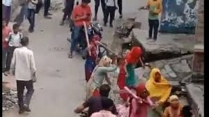 हाथ में लाठी लेकर विरोध प्रदर्शन कर रही थी महिलाएं