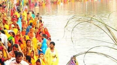 बिहार में लाखों व्रतियों ने अस्ताचलगामी सूर्य को दिया अर्घ्य