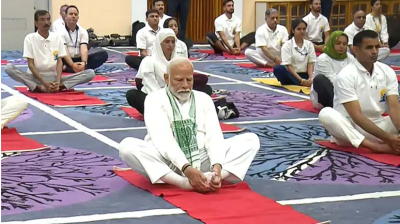 अंतरराष्ट्रीय योग दिवस के मौके पर पीएम मोदी ने किया योग