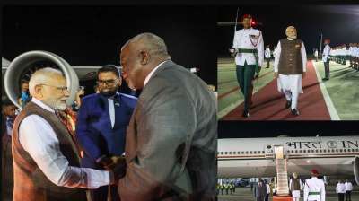 गुयाना पहुंचे पीएम मोदी, भारतीय समुदाय के स्वागत से गदगद.............स्वागत के लिए हार्दिक धन्यवाद