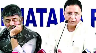 बेंगलुरु । कर्नाटक में मुख्यमंत्री सिद्धारमैया के नेतृत्व वाली सत्तारूढ़ कांग्रेस सरकार के खिलाफ कुछ कांग्रेस विधायकों द्वारा आवाज उठाने के बाद, एआईसीसी महासचिव और कर्नाटक प्रभारी रणदीप सिंह सुरजेवाला...