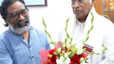 नई दिल्ली । कांग्रेस अध्यक्ष मल्लिकार्जु्न खड़गे और लोकसभा में नेता प्रतिपक्ष राहुल गांधी ने झारखंड के मुख्यमंत्री हेमंत सोरेन से चुनावी रणनीति एवं तैयारियों को लेकर चर्चा की ।