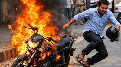 जिला न्यायालय के पास चलती बाइक बनी आग का गोला, मचा हड़कंप