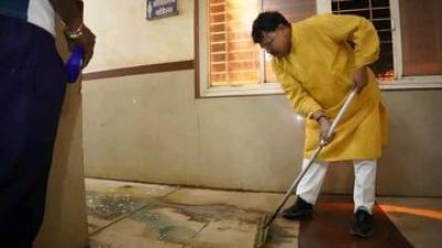 अस्पताल में गंदगी देख भड़के मंत्री प्रद्युम्न सिंह तोमर, खुद सफाई में जुटे